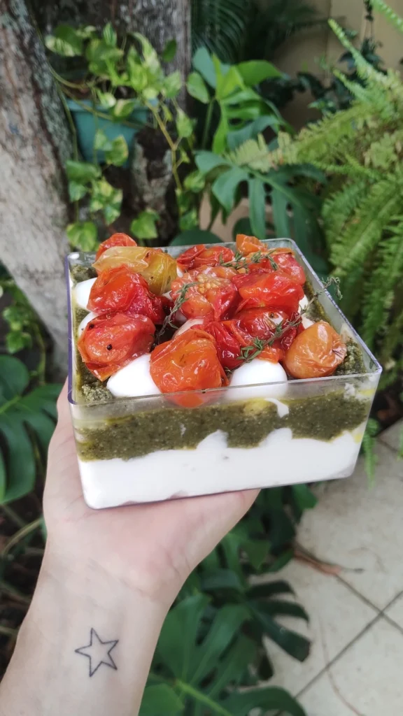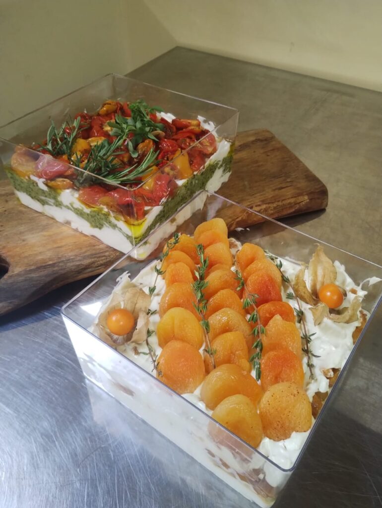 As camadinhas são montadas em uma embalagem de acrílico, prontas para irem a mesa e servir.